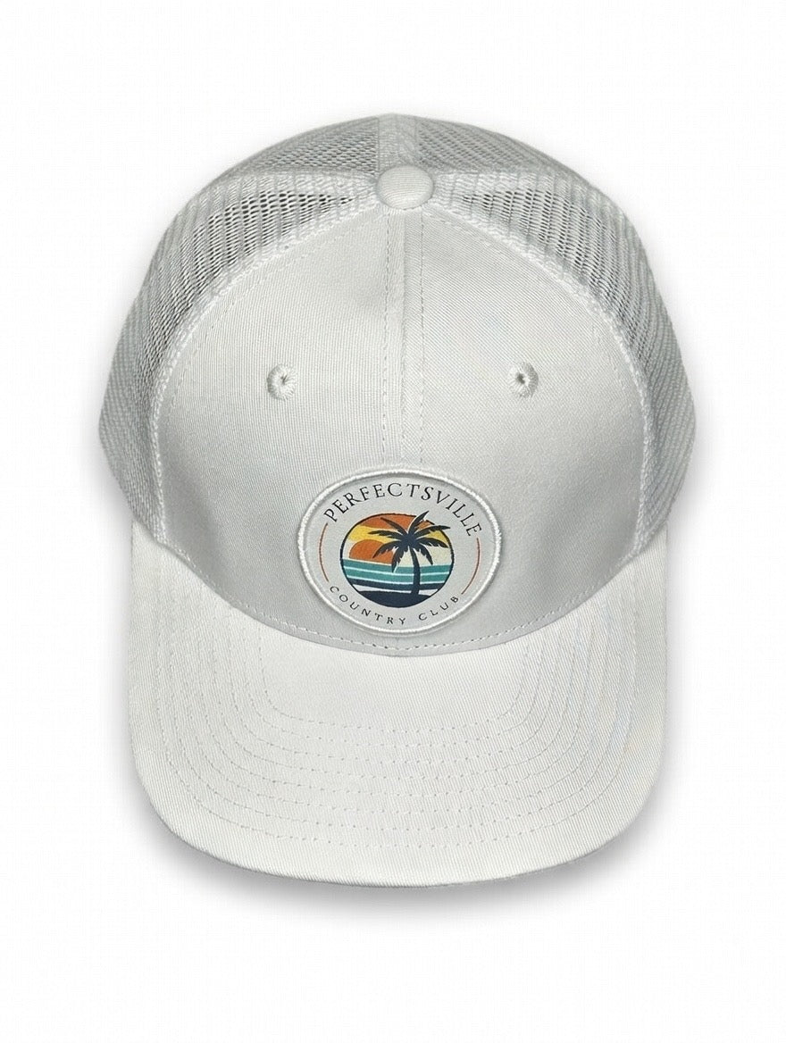 PERFECTSVILLE Country Club Snapback Hat (White & White)